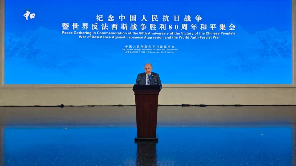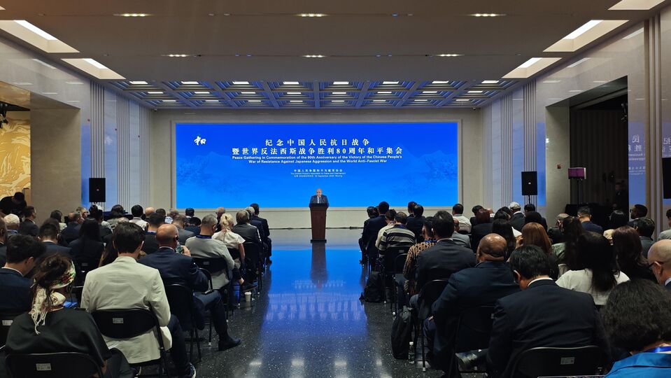 2025年9月26日,由中国人民争取和平与裁军协会主办的纪念中国人民抗日战争暨世界反法西斯战争胜利80周年和平集会在北京举行。中共中央对外联络部副部长陆慷、驻华使团外交官、老战士代表和其他高级别嘉宾出席活动。