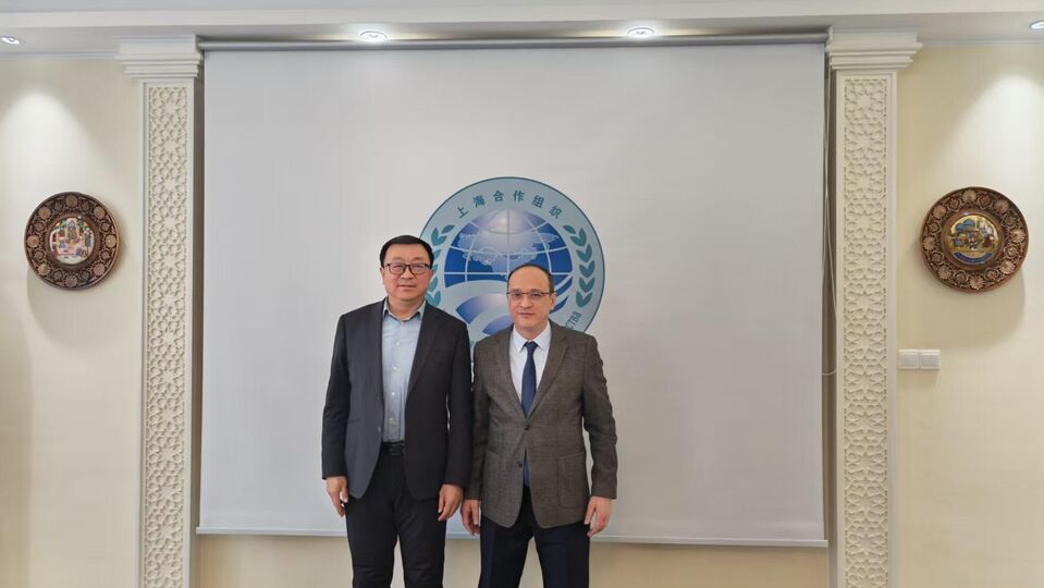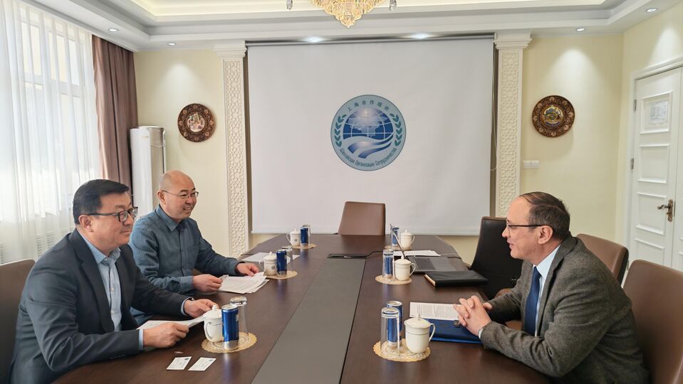 2026年1月13日,上海合作组织副秘书长图尔苏诺夫在上合组织秘书处会见了中国科学院新疆生态与地理研究所所长张元明。