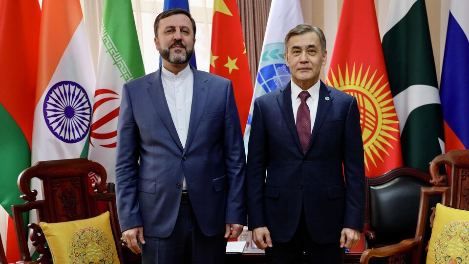 2026 年 2 月 5 日,上海合作组织秘书长叶尔梅克巴耶夫在秘书处会见伊朗伊斯兰共和国外交部副部长加里布阿巴迪。