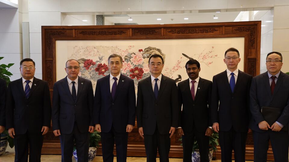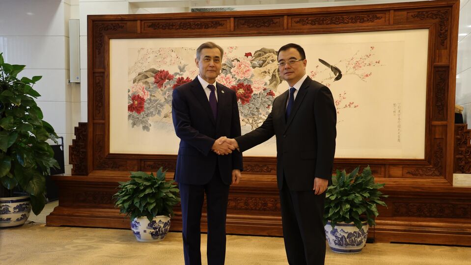 2026 年 2 月 10 日,上海合作组织秘书长叶尔梅克巴耶夫在中华人民共和国外交部会见中国外交部部长助理刘彬。