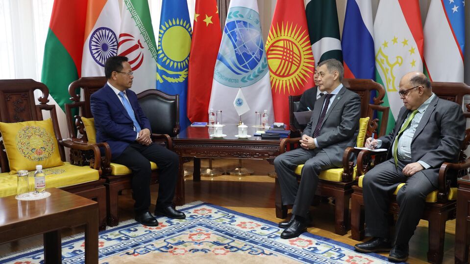 徐贵相书记介绍了新疆维吾尔自治区与上合组织成员国在政治、经济、文化等各领域的合作成果,强调新疆始终将上合组织视为核心国际合作伙伴之一。新疆愿深化与2025-2026年上合组织轮值主席国吉尔吉斯斯坦的交流合作,并希与上合组织秘书处共同举办庆祝上合组织成立25周年等活动。