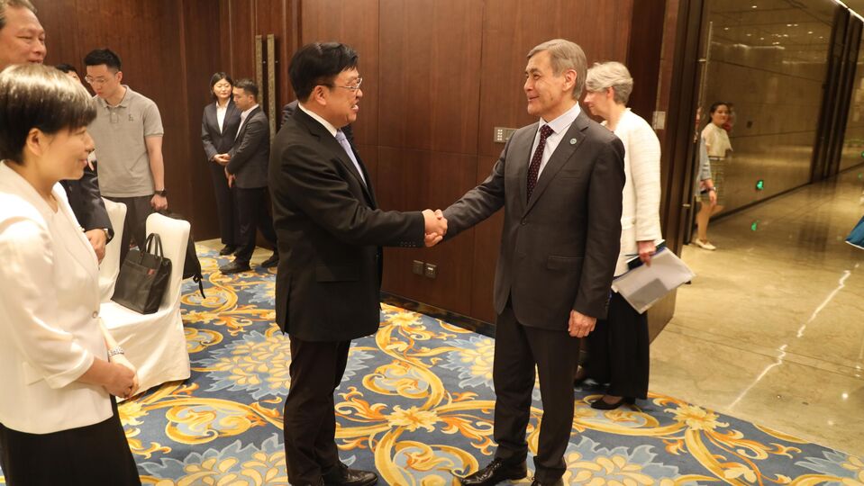 2026年4月12日,上海合作组织秘书长叶尔梅克巴耶夫在访问海南期间会见了海南省委书记冯飞。