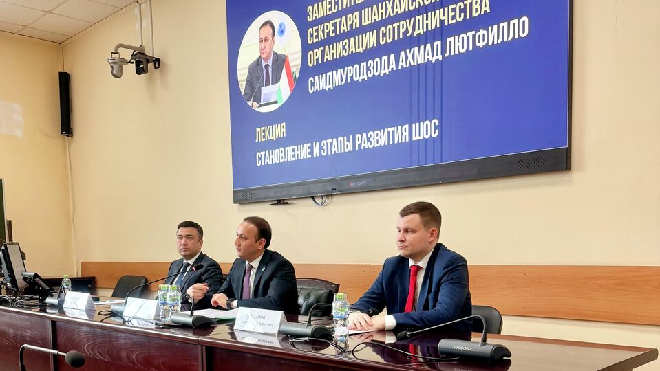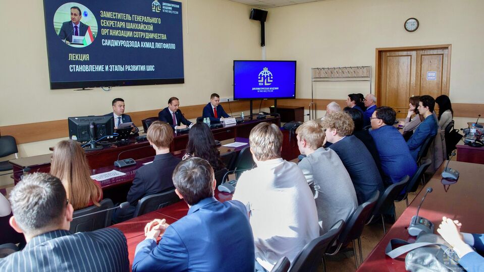 2026 年 4 月 26 日俄罗斯莫斯科国际关系学院举办上合组织专题讲座(SCO Talks)俄罗斯莫斯科国际关系学院举办上合组织专题讲座(SCO Talks)2026年4月24日,在“上合组织对话(SCO Talks)”项目框架下,上海合作组织秘书处代表团到访俄罗斯莫斯科国际关系学院,并为该院师生做专题讲座。俄罗斯莫斯科国际关系学院举办上合组织专题讲座(SCO Talks)上合组织副秘书长萨义德穆罗德佐达在讲座中介绍了上合组织的成立与发展的历史,阐述了上合组织为完善自身运行机制开展的综合性工作,并介绍了秘书处为纪念上合组织成立25周年策划的系列活动计划。俄罗斯莫斯科国际关系学院举办上合组织专题讲座(SCO Talks)活动现场积极开展互动交流,副秘书长与秘书处顾问逐一回答了师生关心的各类问题。上合组织秘书处并邀请学院在校学生参与秘书处开展的纪念上合组织成立25周年征文比赛。俄罗斯莫斯科国际关系学院举办上合组织专题讲座(SCO Talks)