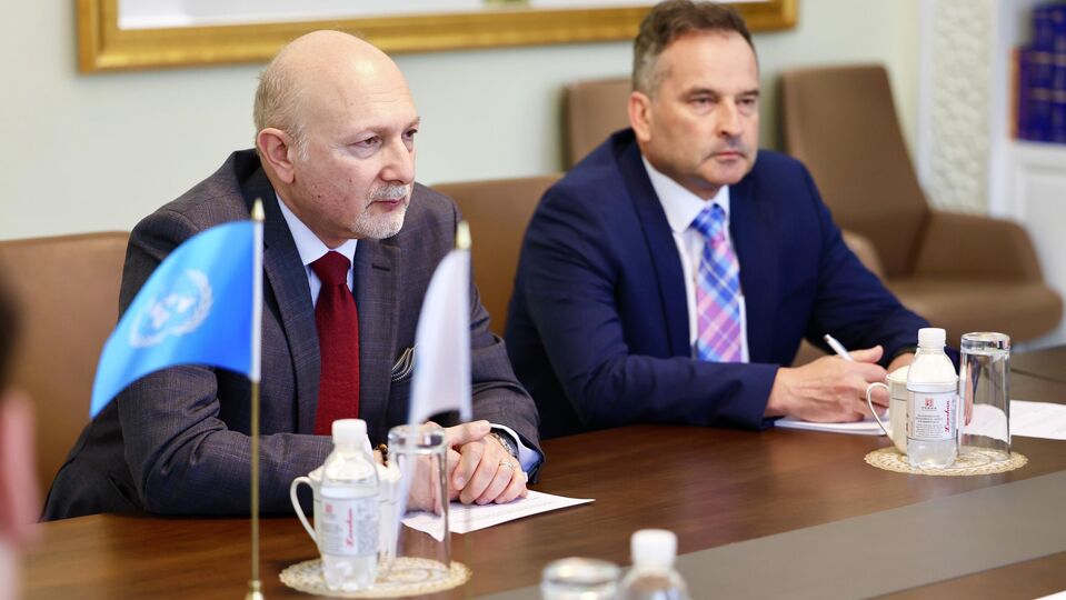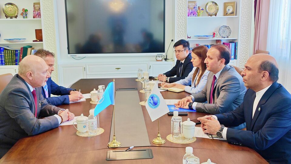 2026年4月28日,上海合作组织副秘书长萨义德穆罗德佐达在秘书处会见了来华进行工作访问的联合国秘书长中亚事务特别代表、中亚地区预防外交中心主任伊姆纳泽。