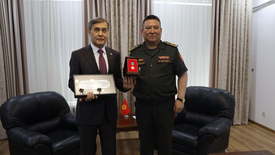 会见期间,吉尔吉斯斯坦国防部长向上海合作组织秘书长授予加强友谊与合作荣誉胸章。