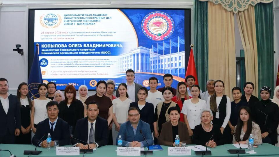 2026 年 4 月 30 日吉尔吉斯共和国外交部外交学院院举办上合组织专题讲座吉尔吉斯共和国外交部外交学院院举办上合组织专题讲座2026年4月28日,上海合作组织秘书处代表团访问位于比什凯克的吉尔吉斯共和国外交部外交学院。吉尔吉斯共和国外交部外交学院院举办上合组织专题讲座本次活动是为纪念上合组织成立 25 周年系列公开讲座之一。上合组织副秘书长科佩洛夫与学院师生座谈交流,阐述了上合组织的成立历程与发展沿革、当前工作重点及优先合作方向,并介绍了为纪念上合组织成立25周年即将举办的系列活动安排。吉尔吉斯共和国外交部外交学院院举办上合组织专题讲座在交流环节,科佩洛夫副秘书长回答了学生们关于上合组织框架内合作及未来发展前景等感兴趣的问题。学生并对参与上合组织成立 25 周年征文比赛表现出浓厚兴趣。吉尔吉斯共和国外交部外交学院院举办上合组织专题讲座
